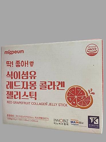 Надписи на упаковке: Red Grapefruit Collagen Jelly Stick; «С диетическими волокнами»; «Коллаген с красным грейпфрутом». Логотипы INNOBIZ, MAINBiz, Venture Enterprise.