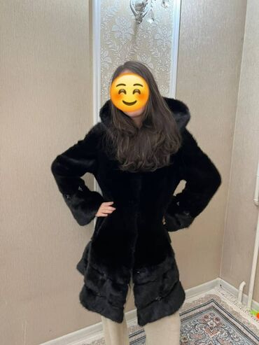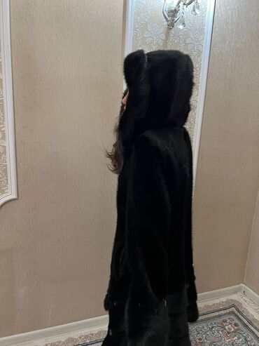 Шуба женская с капюшоном, натуральный норка, цельная, не стриженная, цвет глубокий черный.покупала за 1700$ состояние идеальное, 46р