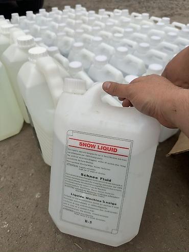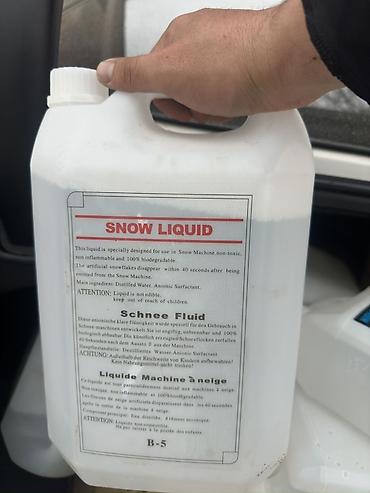 - Snow Liquid (B-5) – жидкость для снежных машин. Нетоксичная, негорючая, 100% биоразлагаемая. Искусственные «снежинки» исчезают примерно через 40 секунд после выхода из машины. Основные компоненты: дистиллированная вода и анионное ПАВ. Канистра 5 литров.