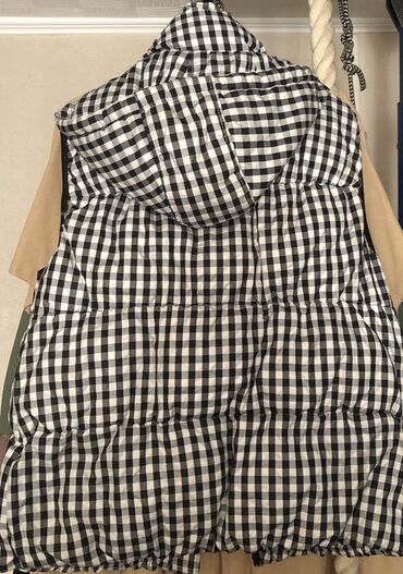 Стеганый утепленный жилет в клетку (черно-белая «гингем»).