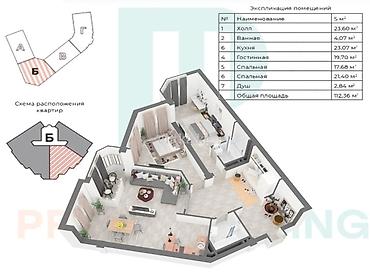 3 комнаты, 112 м², Элитка, Готовая ПСО (под самоотделку)