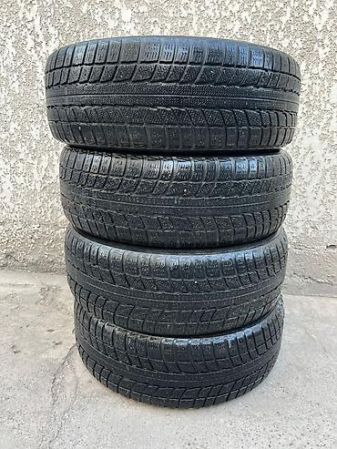 Срочна сатылат. Зимние шины (комплект 4 шт.) - Тип: зимние, фрикционные (липучка) - Размер: 235/55 R18 (на боковине видна маркировка 235/55R18) - Рисунок протектора: направленный/симметричный с ча...