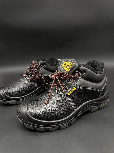 Ботинки оснащены металическим подноском, а в качестве застежки выступает шнуровка по всей длине язычка.