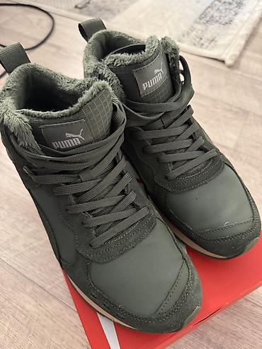Зимние высокие кроссовки/ботинки Puma, цвет хаки (оливковый).