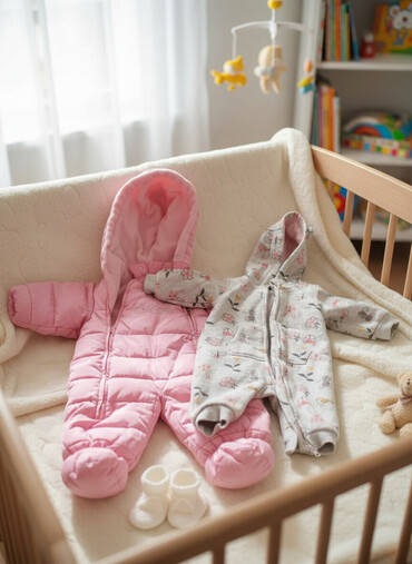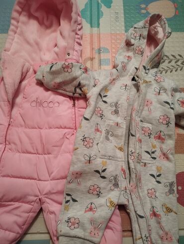 Детский комплект для девочки: теплый зимний комбинезон и легкий х/б комбинезон с капюшоном.