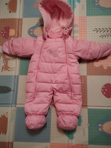 Идеально для прогулок: теплый вариант на холодную погоду и более тонкий для дома или межсезонья. Размер ориентировочно для младенца 0-6м. (см. пропорции на фото). В подарок отдам шапку под цвет розового комбинезона.