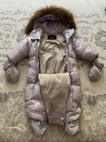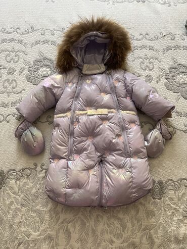 Детский зимний комбинезон-конверт - Цвет: нежно‑зеленый с принтом
