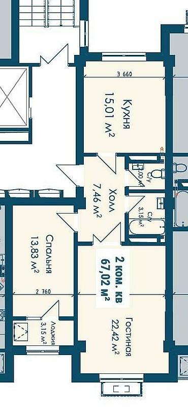 Продаётся двухкомнатная квартира в жилом комплексе «Сейтек» от строительной компании Мунара Строй.
