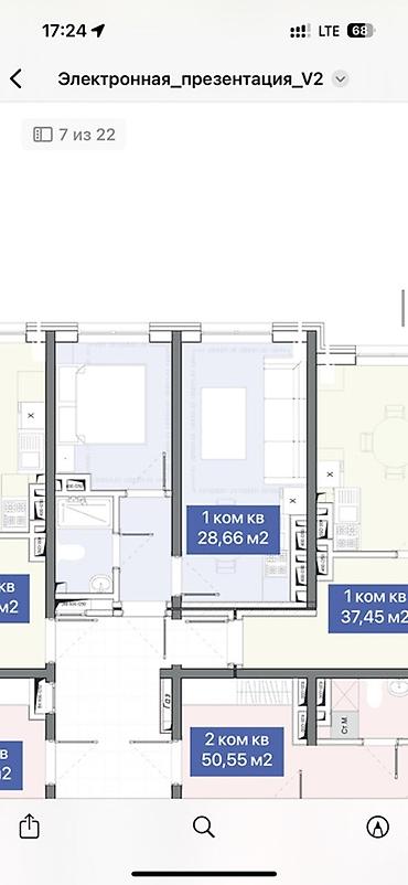 — 1 бөлмөлүү, 37 м² → ≈ 32 400 $ → ≈ 40 000 сом/ай