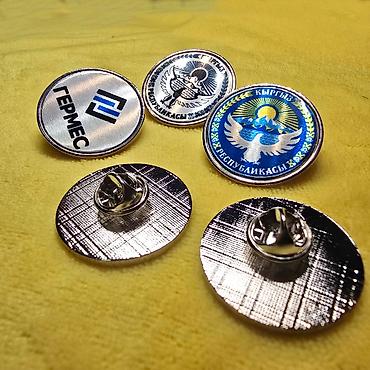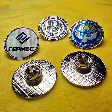 Значек из металла 28мм с вашей гравировкой, цвет серебро, срок изготовления от одного дня.