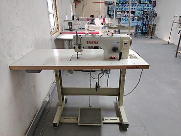 - Полнокомплектные промышленные прямострочные машины с рабочими столами и педальным приводом.