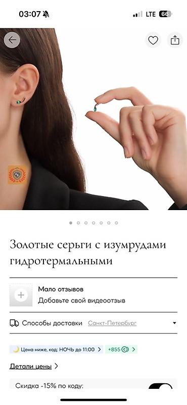 - Лаконичные серьги-гвоздики с ярко‑зелёными гидротермальными изумрудами.