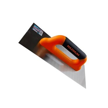 Шпатель зубчатый Maximum с лезвием из нержавеющей стали и прочной пластиковой ручкой. Инструмент предназначен для равномерного нанесения клеевых растворов и других строительных смесей. Зубчатая кромка обеспечивает оптимальное распределение материала, что важно при укладке плитки или других отделочных работ. Удобная ручка оранжевого цвета с черной вставкой обеспечивает надежный хват.