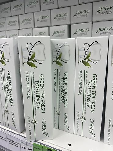 - Green Tea Fresh Toothpaste — освежающая паста с экстрактом зеленого чая. Объем: 120 г. Вкус: зеленый чай и мята.