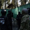 - Угловой диван из нескольких секций: две прямые лавки и угловой модуль. Спинка и сиденья с мягкими серо-зелёными подушками, каркас из дерева...