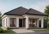 - Кирпичный/шлакоблочный одноэтажный дом с фасадом под штукатурку, крыша из шифера.
