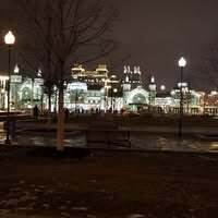 - Просторное помещение с высоким потолком и ярким потолочным освещением