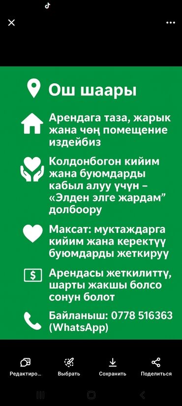 Ищем в аренду помещение в городе Ош. Назначение: пункт приема