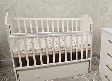 - Классическая белая кроватка с продольным маятником для укачивания.