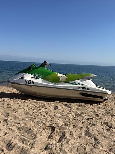 - Зеленая верхняя часть корпуса/кожух, белый низ, фирменные логотипы Yamaha и WaveRunner.