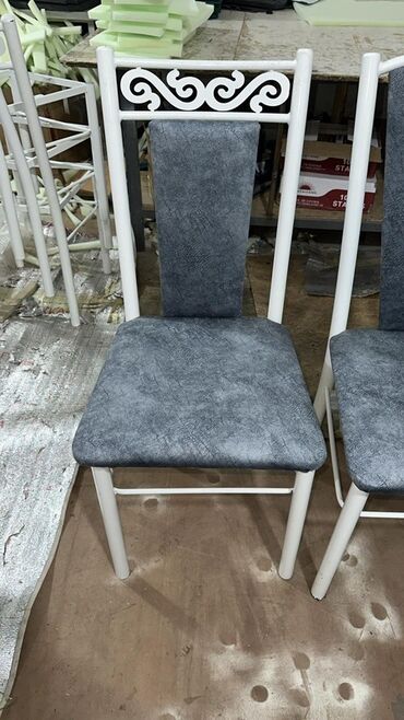 Комплект обедных стульев с металлическим каркасом - Каркас: сталь с порошковым белым покрытием — устойчива к царапинам и коррозии, легко протирается. - Сиденье и спинка: мягкая обивка серого цвета...