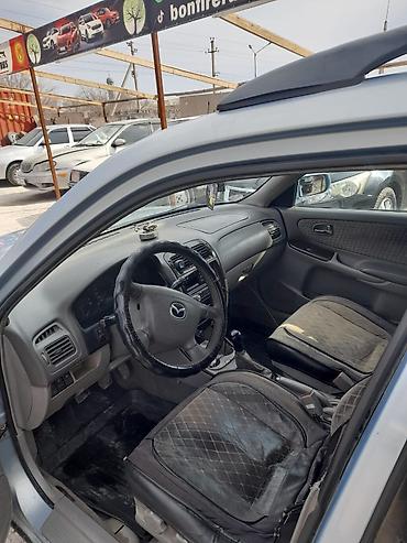 Mazda 626 седан, серебристый цвет, левый руль. Государственный номер S 9225 J. Кузов: - 4-дверный седан, тонированные стекла. - Серебристая окраска, бампера в цвет кузова. - Задние фонари оригинал...