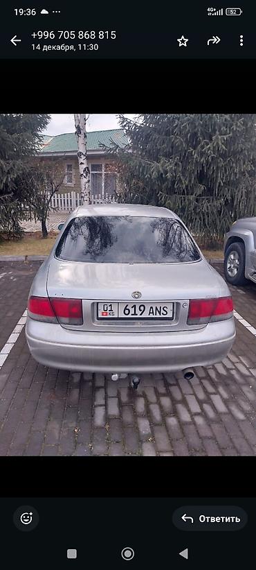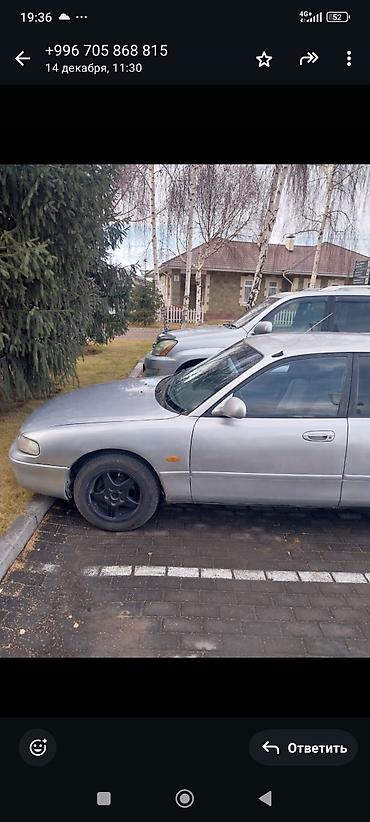 Mazda Millenia, серебристый седан бизнес-класса. Вложения есть: помпу надо поменять Торг у капота Машина находится в ысык куле Обмен малга деле