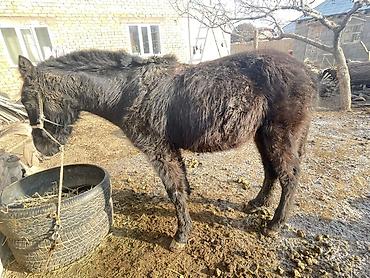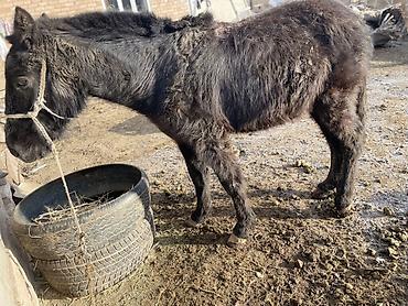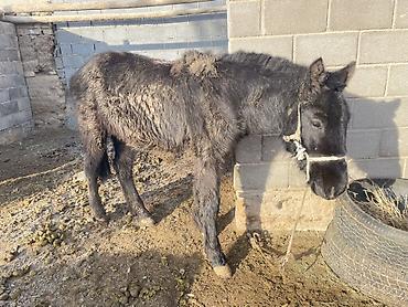 Осёл (малый/средний рост), тёмно-коричневая шерсть с более светлыми отметинами на морде и животе. Длинные уши, крепкие копыта. Содержится в закрытом стойле, ест сено. Подходит для хозяйства: перево...
