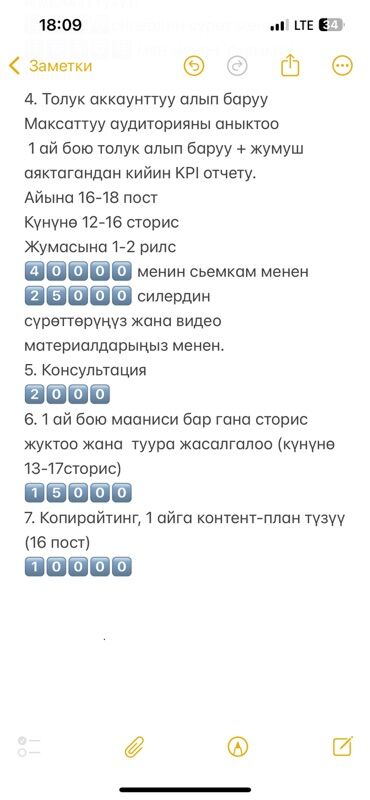 6) Ведение только сторис 1 месяц (ежедневно 13–17 смысловых сторис): 15000.
