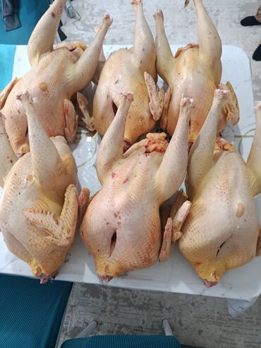 Домашние тушки птицы, полностью ощипанные и потрошённые. - Цельные тушки крупного размера, без голов и лап, с сохранёнными крыльями и кожей. - Чистая обработка: удалены внутренности, остаточные пе...