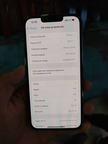 IPhone 13 Pro, 512 ГБ, графитовый - Модель: iPhone 13 Pro (номер модели MLVH3KH/A) - Память: 512 ГБ (доступно ~467,9 ГБ на момент фото) - iOS: 18.6.2 - Цвет: графитовый - Экран: , Super Retina XDR ...