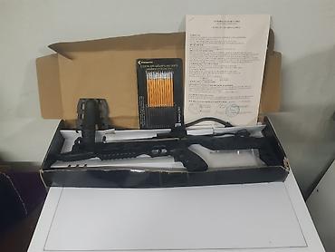 - Компактный арбалет с прикладом «карабинного» типа, складывающаяся/съёмная лира (плечи) и тетива.