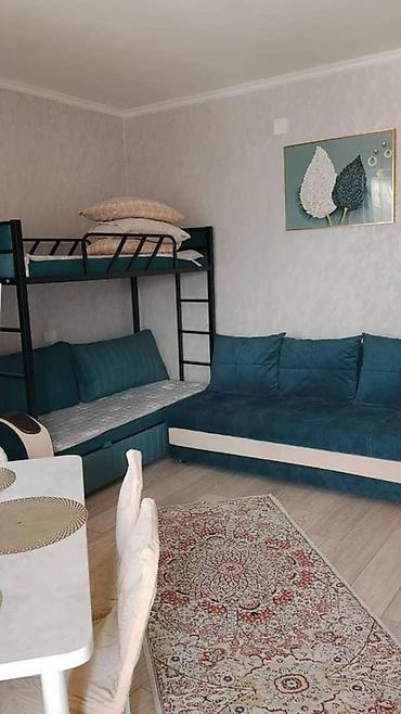 - Светлая жилая зона: диван, двухъярусная кровать, дополнительное спальное место, настенное деко.