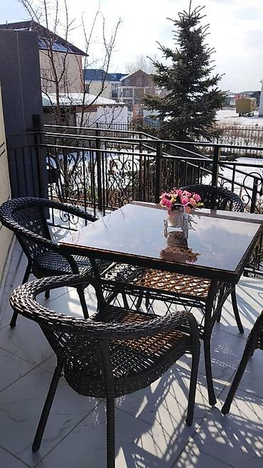 - Уютная терраса/балкон с уличным столом и плетеными креслами для отдыха на свежем воздухе.