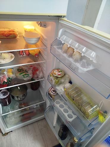 - Двухкамерная конструкция: морозилка сверху, холодильное отделение снизу.