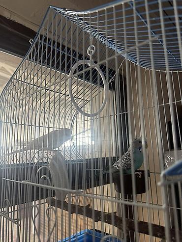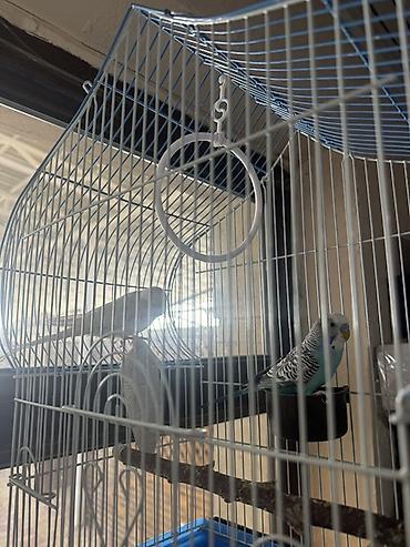 - Просторная металлическая клетка с изогнутой крышей; прутья частые, безопасное расстояние между ними для мелких птиц (волнистые попугаи, канарейки, амадины).