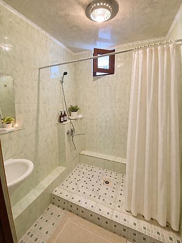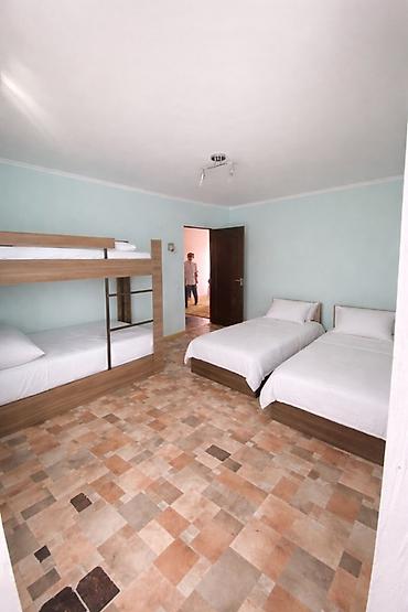 Подходит для нескольких пар, семьи с детьми или компании: одновременно разместится большое количество гостей благодаря сочетанию двуспальных, односпальных и двухъярусной кроватей. Оснащение санузлов разделено на душ и туалет для удобства.