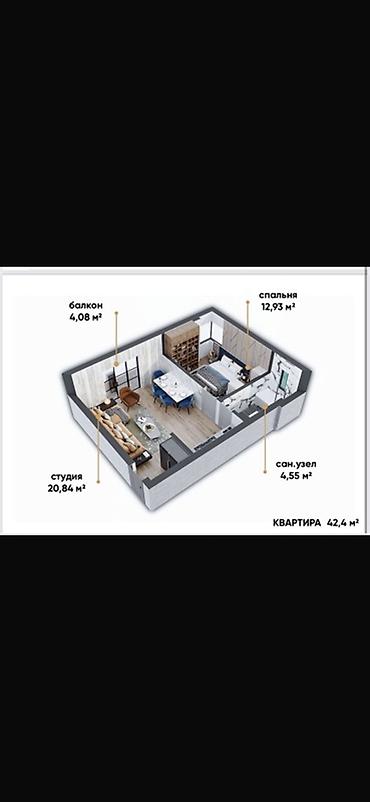 - Современные 3D‑планы с продуманной расстановкой мебели, удобной кухонной линией, местом под обеденную зону и диванную группу.