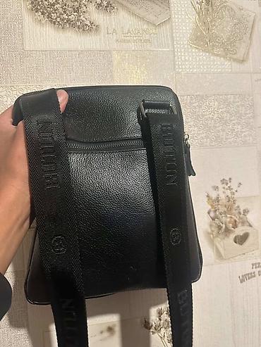 Сумка через плечо (месcенджер) из черной фактурной экокожи.