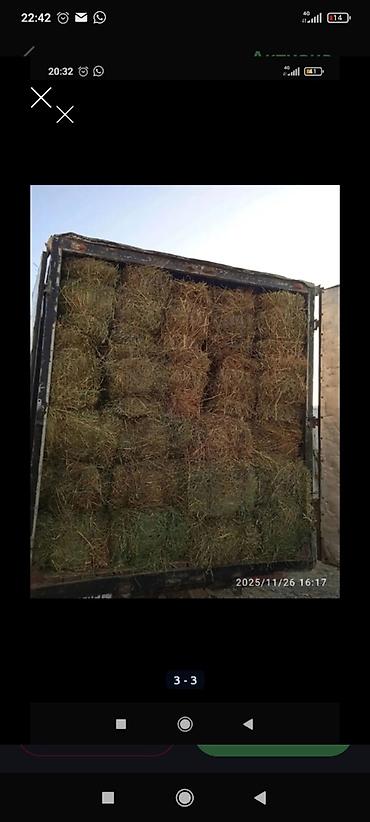 Разнотравье и мелкий камыш в тюках 360 сом - травянные тюки прямоугольной формы, плотная прессовка. - Размер стандартных тюков по фото — компактные, удобны для ручной погрузки и штабелирования. - ...
