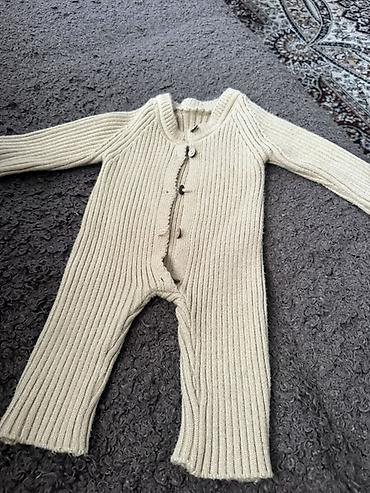 Вязаный детский комбинезон - Модель: однотонный комбинезон с длинными