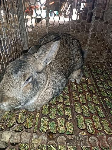 Кролик породы-гигант (похожие на фландра/серого великана). Окраc — тёмно-серый (агути), плотная короткая шерсть, мощное телосложение, длинные уши. Содержится в вольере на сене. Подходит: - для раз...