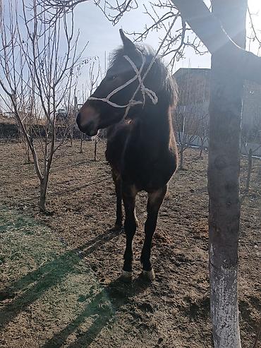 Семиз жазга кунан байтал сатылат Малдуулугуда жакшы Лошадь (мерин/кобыла не указано) темной масти с отметиной на лбу. Возраст визуально молодой. Компактное телосложение, крепкие конечности, аккуратные копыта. На фото — в простом веревочном недоуздке, спокойно стоит и ведется в руках. Подходит для дальнейшего обучения под верх и в упряжь, хозяйственных работ, прогулок. Неприхотлива в содержании, пасется на выгуле, привыкла к стойлу и деннику. Отличный вариант для личного подворья, фермерского хозяйства или конного туризма после доводки.
