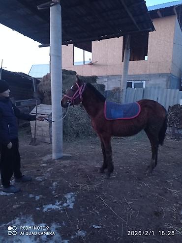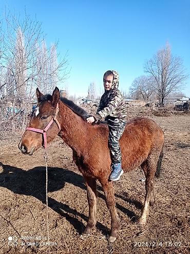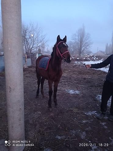 Срочно срочно жашы 3 жаш эркек малга улака универсал басыгы бар женил оозу жумшак Кеми бар ат ысык атада Лошадь под верховую езду - Масть: гнедая, с белой отметиной на морде и белой «чулочной» отм...