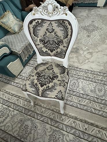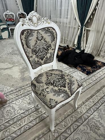 Стул с мягкой спинкой и сиденьем в обивке кремового цвета. Спинка фигурной формы с верхней ручкой для удобного переноса, украшена декоративной стяжкой с блестящими пуговицами. Каркас и ножки — проч...