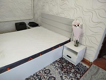 - Прикроватная тумба: открытая полка + выдвижной ящик с черной ручкой.