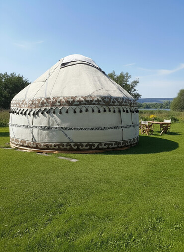 Вымпел, стяг с золотистыми деталями и кисточками, выполненный в стиле национального флага Кыргызстана. На вымпеле изображены горы, солнце, национальный орнамент и надписи на кыргызском языке. Вымпе...