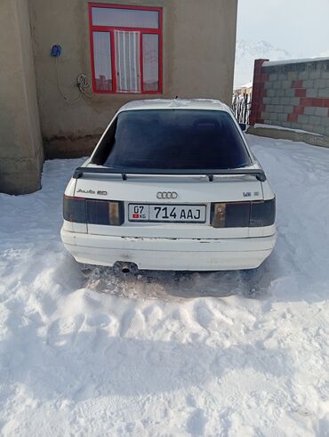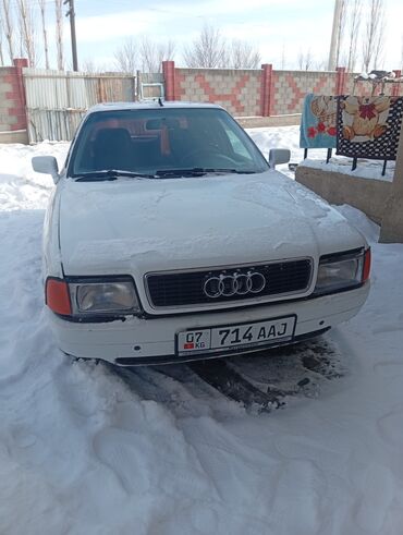 Audi 80 B3 седан, белый цвет. На фото – автомобиль с киргизскими номерами (KG, регион 07).