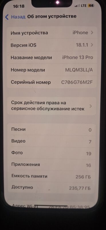- Память: 256 ГБ, доступно около 235,77 ГБ