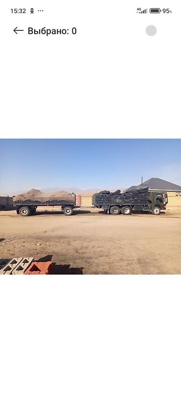 Самосвал КамАЗ 6x4 - Кузов-самосвал с задней разгрузкой, высокие борта с деревянными надставками - Полноразмерная запаска закреплена на площадке кузова - Трёхосная схема (две ведущие задние оси), ...